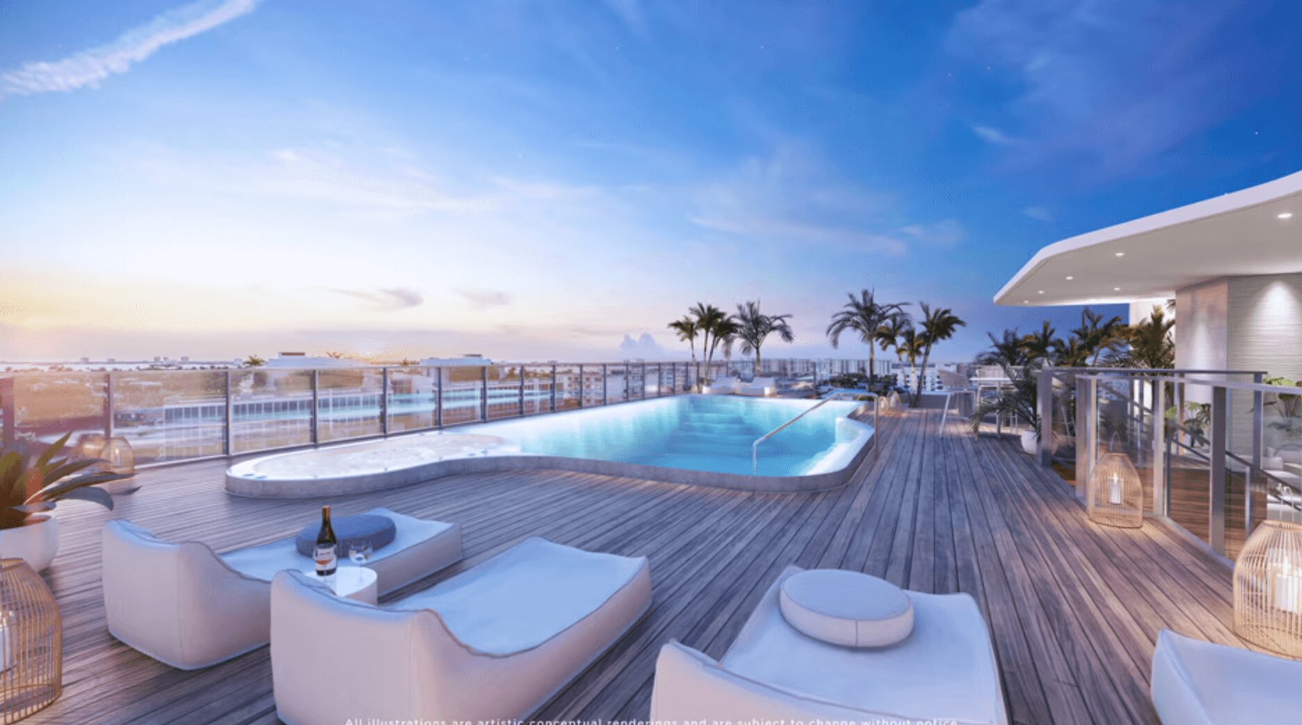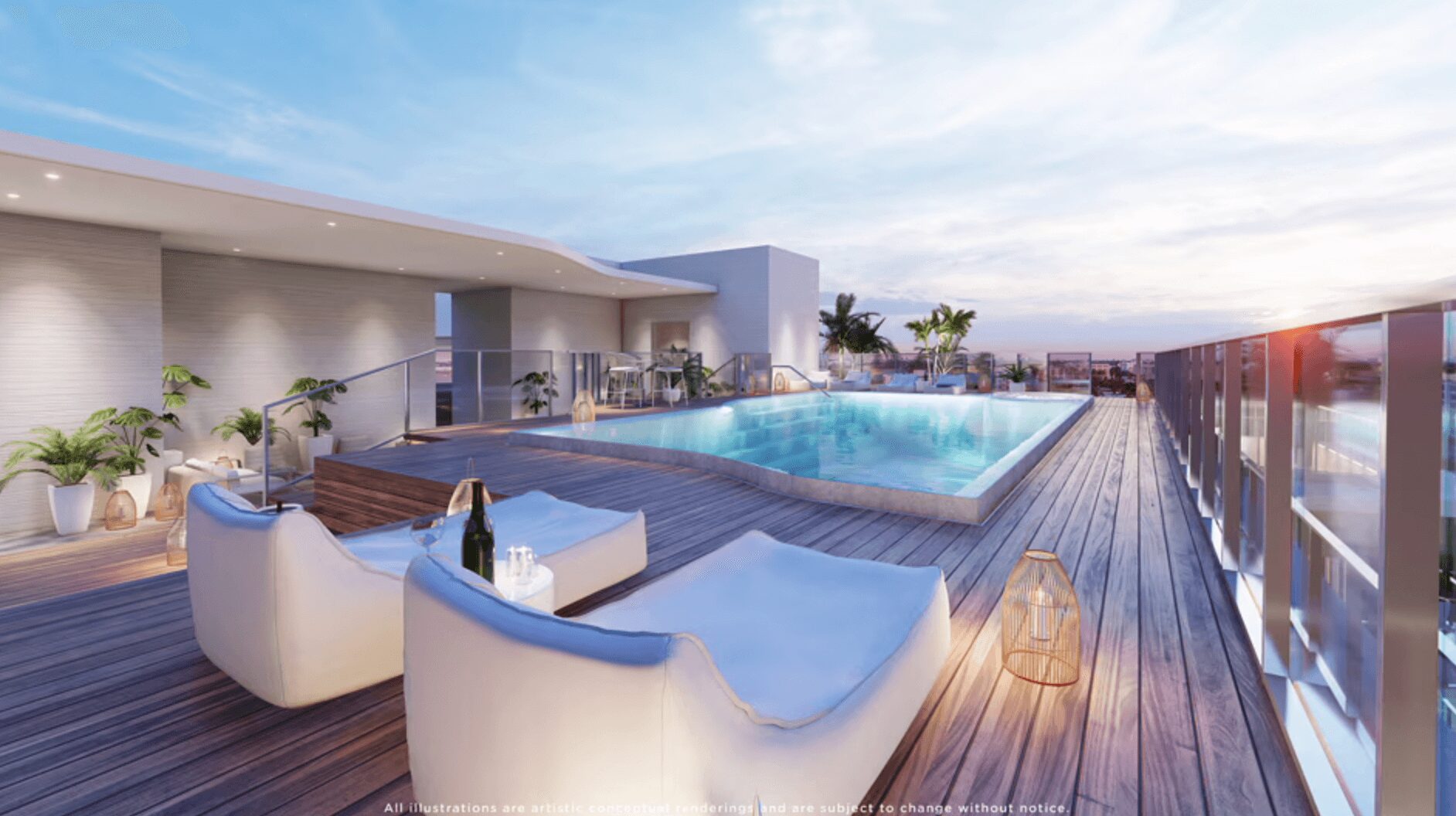 The condo will feature amenities such as an open-air sky lounge with a resort-style pool, a sundeck with bay and skyline views, an outdoor fitness area, an outdoor garden for meditation and yoga, a social room with large screen television and lounge, and landscaped gardens throughout the building.